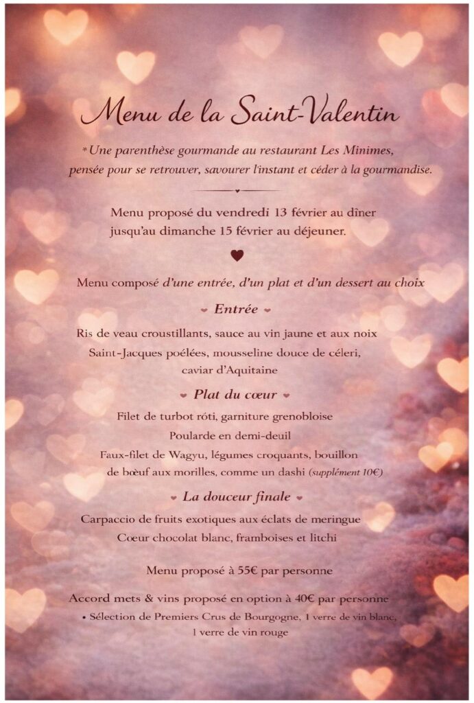 Réservation à faire par mail à restaurant-les-minimes@orange.fr ou par téléphone au 03.80.92.06.19.